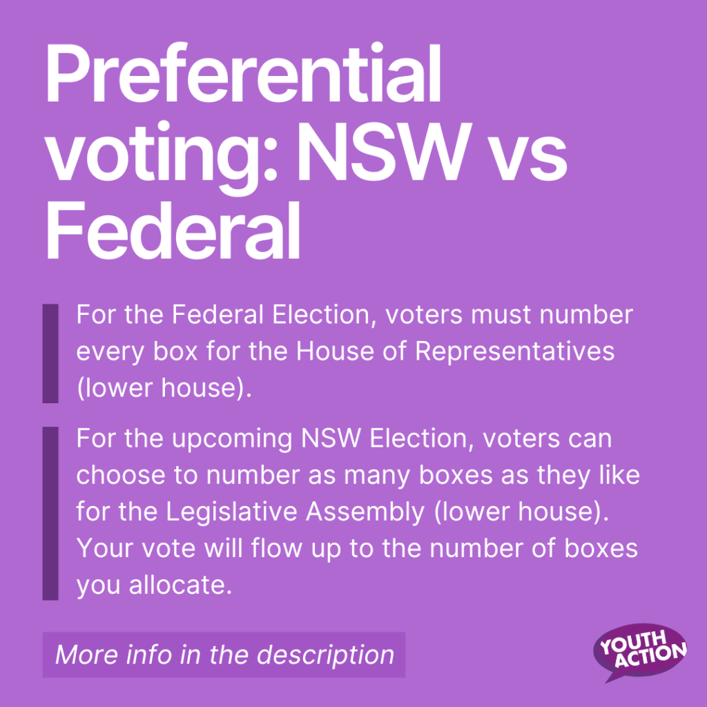 Find more information about how the preferential voting system works in NSW here: https://elections.nsw.gov.au/elections/how-voting-works/voting-in-new-south-wales/how-to-cast-your-vote-in-a-state-election