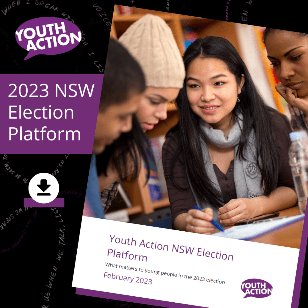 As NSW heads to the polls on 25 March 2023, Youth Action has been hearing from young people and the Youth Sector about their priorities for the election. In preparing our asks for the incoming Government, we heard from over 2,000 young people in 62 consultations, and nearly 1,700 youth sector representatives over 40 occasions, and also a poll of over 1,000 young people.