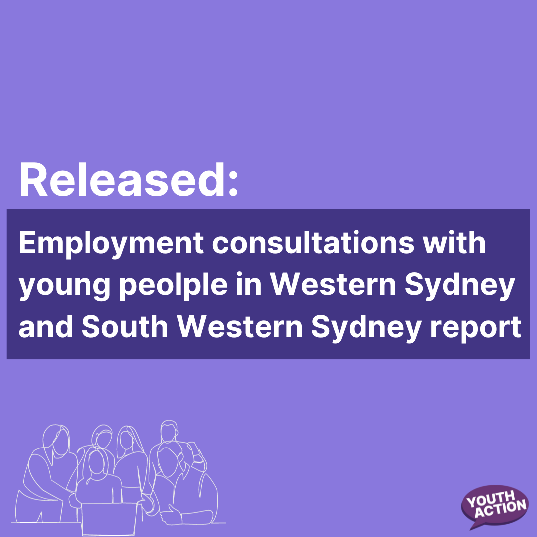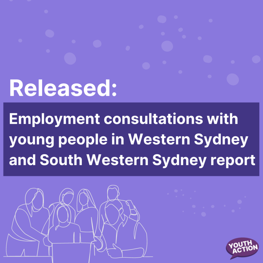 - Youth Action has just released their report “Employment consultations with young people in Western and South Western Sydney.” The report identified a range of policy recommendations that were informed by lived experience and co-designed with young people, including young people from Western Sydney. Read the report here: https://youthactionorgau.wordpress.com/employment-consultations-report-2023/