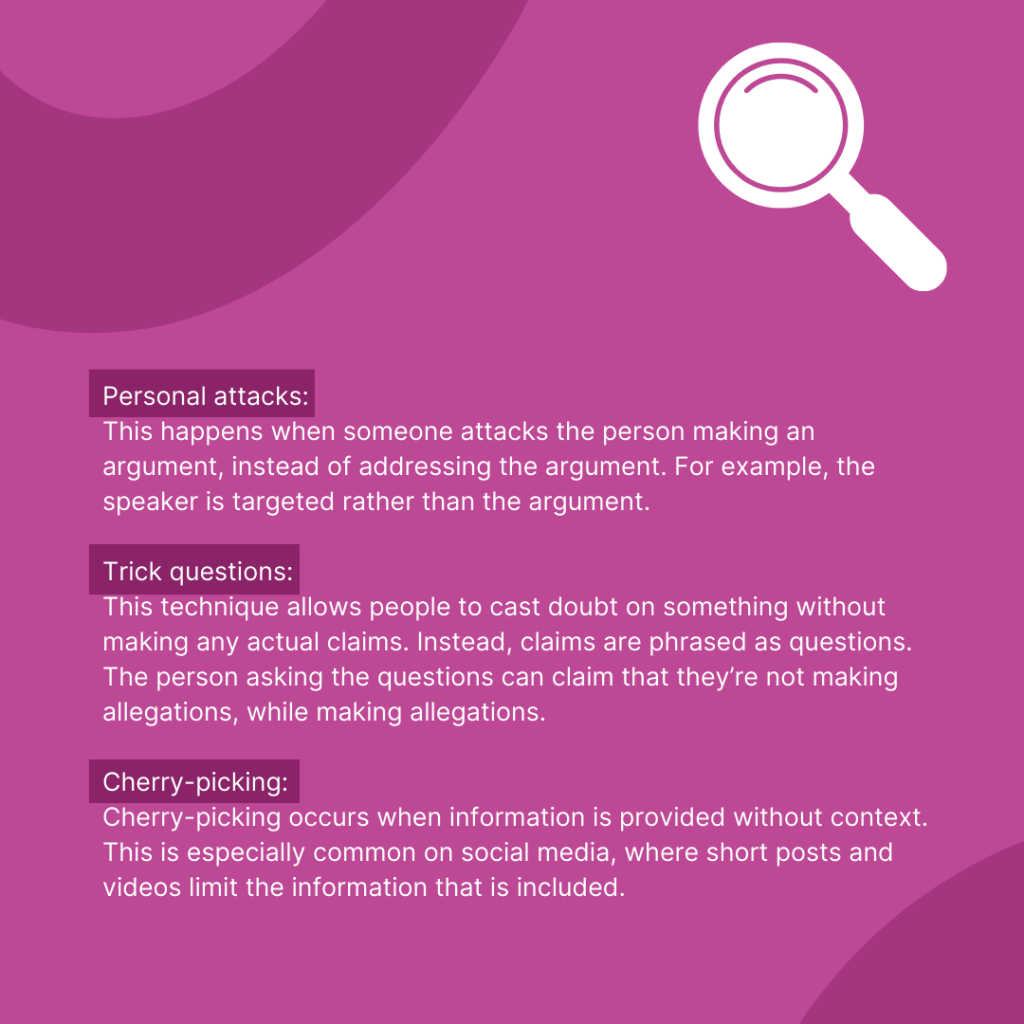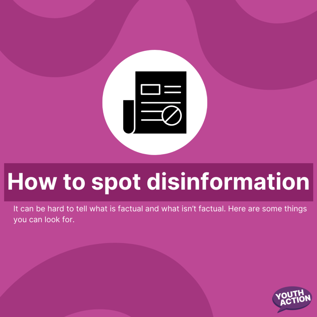 It can be difficult to tell what information on the internet is factual and what isn’t factual. Here are some things you can look for to spot if some information is not factual: emotional language, incoherence, false dilemmas, scapegoating, personal attacks, trick questions, cherry-picking. Learn more about spotting disinformation on Youth Action’s website: https://atomic-temporary-215663268.wpcomstaging.com/voice-referendum/
