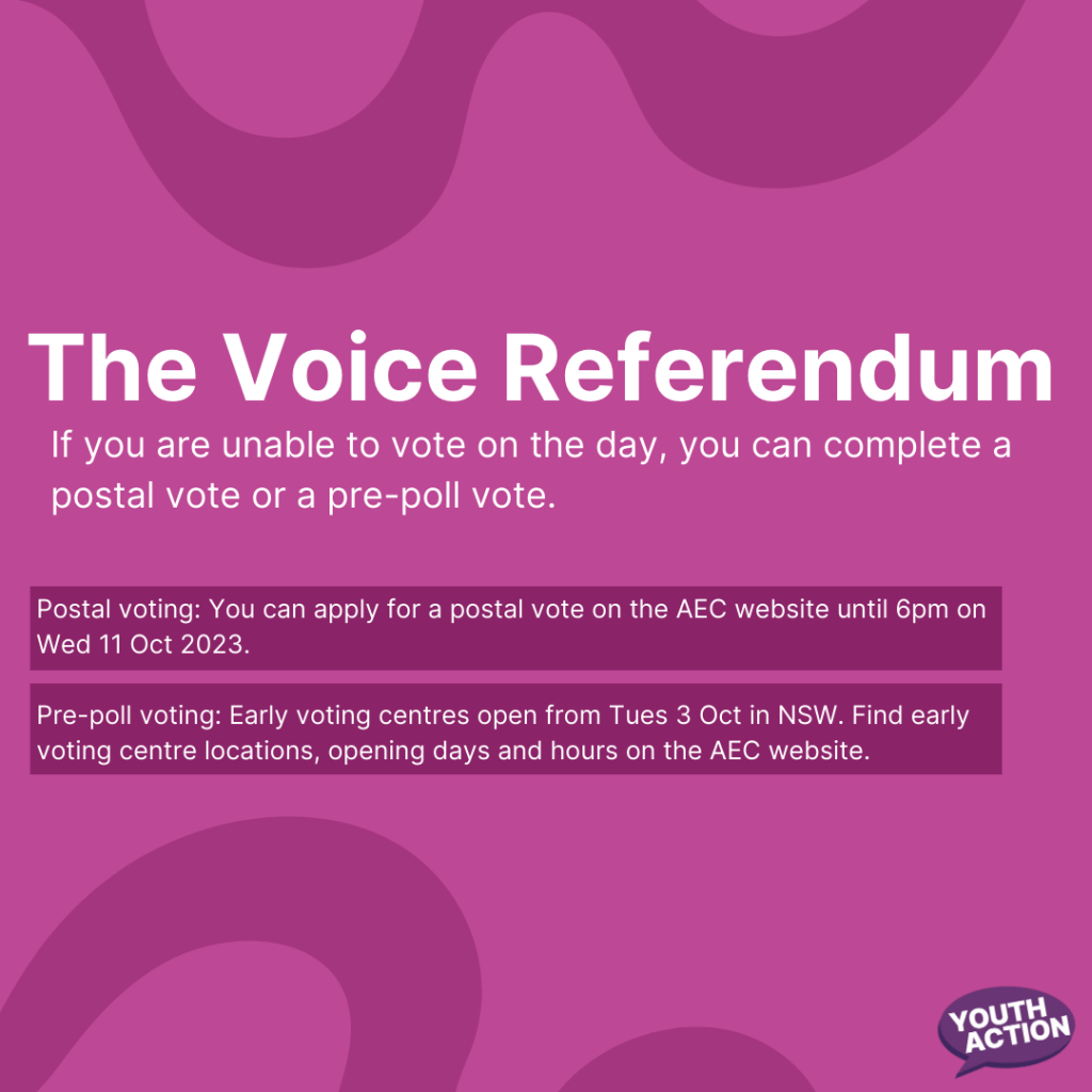 You can learn more about this on Youth Action’s website: https://atomic-temporary-215663268.wpcomstaging.com/voice-referendum/ or by visiting the AEC website.