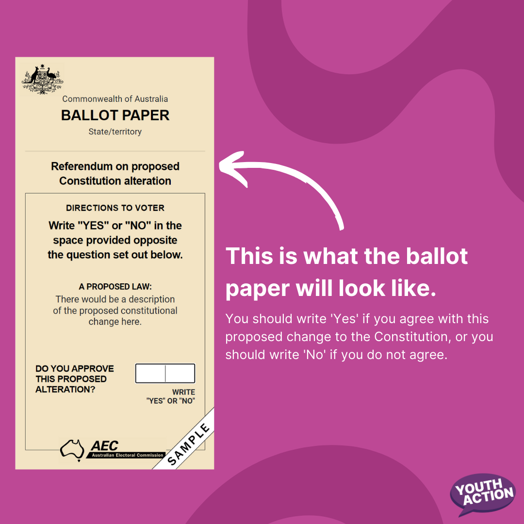 You can learn more about this on Youth Action’s website: https://atomic-temporary-215663268.wpcomstaging.com/voice-referendum/ or by visiting the AEC website.