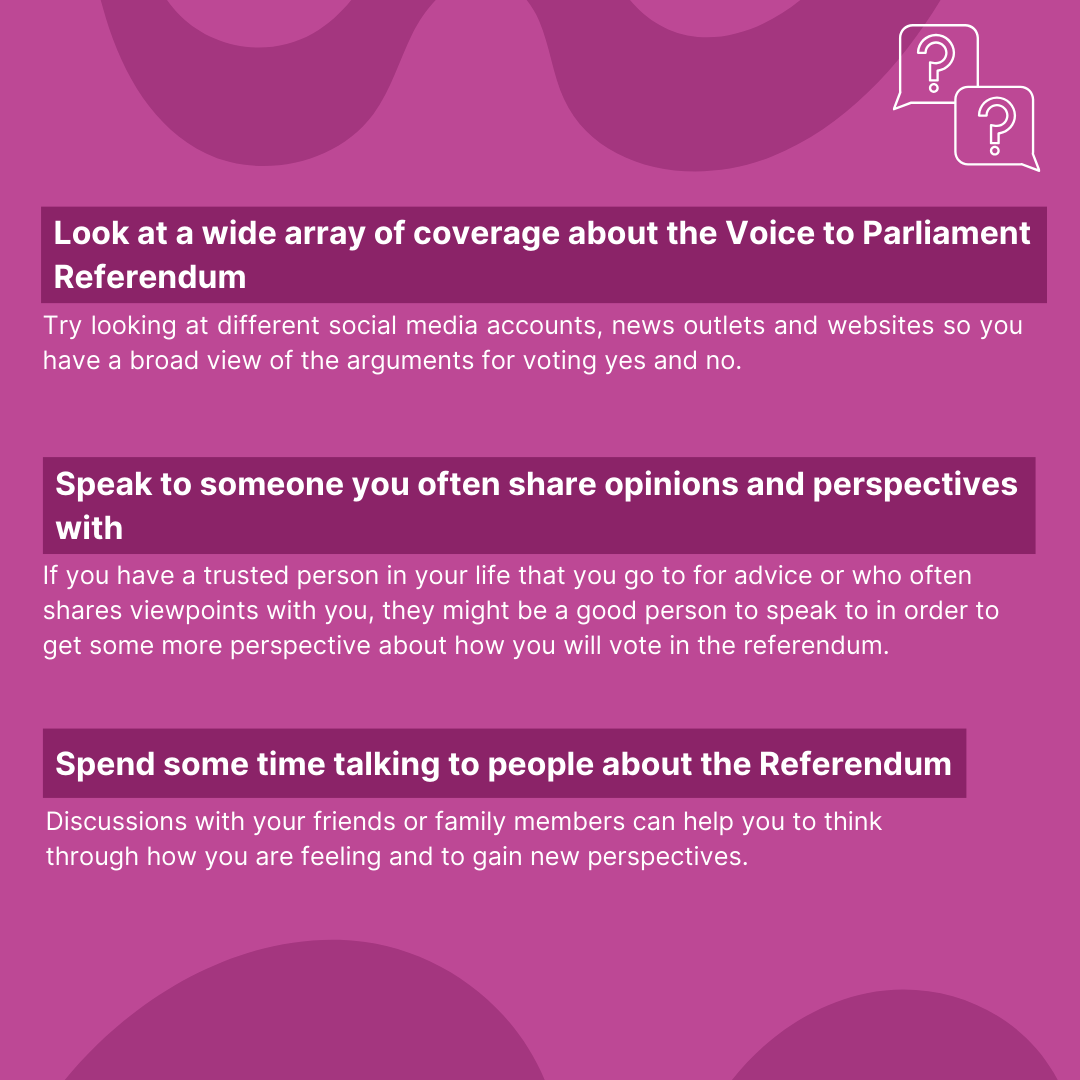 When looking at information about the Voice Referendum, you should always think about whether the information you are looking at is reliable and trustworthy. Visit Youth Action’s website to learn more about how to make an informed decision: https://atomic-temporary-215663268.wpcomstaging.com/voice-referendum/